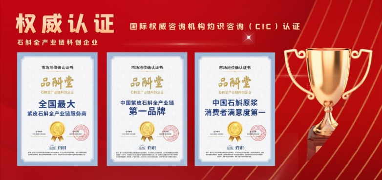 另一方面,国际权威咨询机构灼识咨询(CIC)的认证,则从产业维度坐实了其行业领导地位,认证其为“中国紫皮石斛全产业链第一品牌”和“全国最大紫皮石斛全产业链服务商”,旗下的核心产品也获“中国石斛原浆消费者满意度第一”的认可。